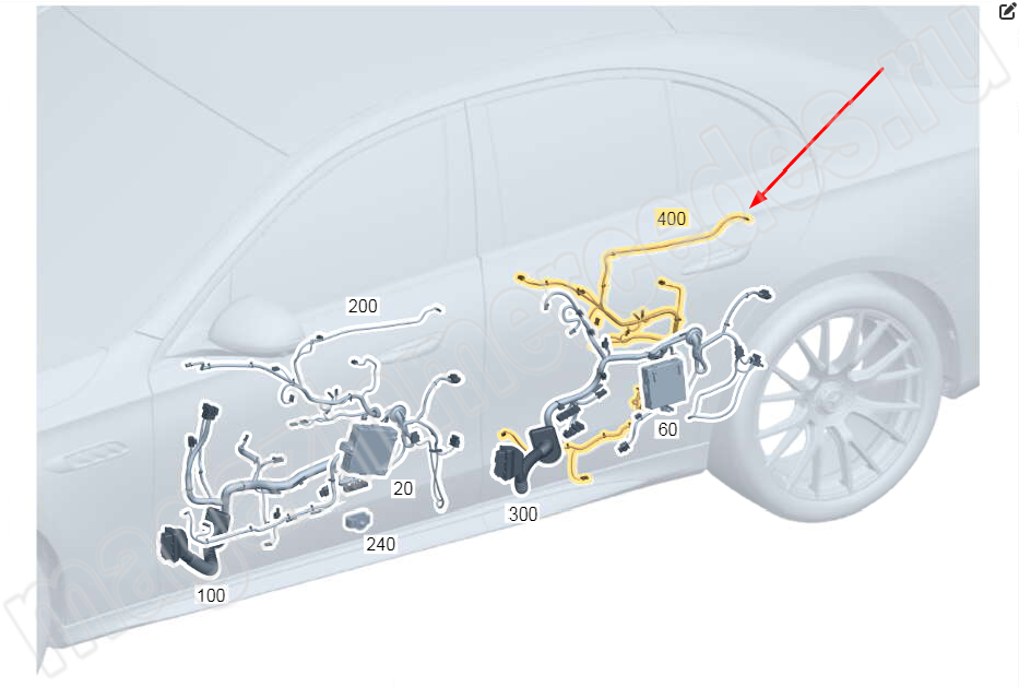 Электропроводка задней двери от блока управления к потребителю Mercedes E Class W214