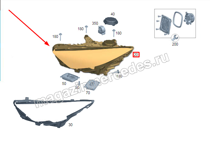 Фара левая Mercedes SL Class R232