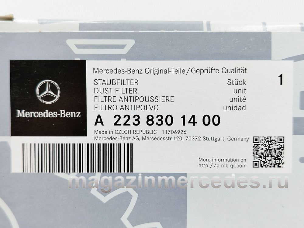 Фильтр салона пылевой для Мерседес