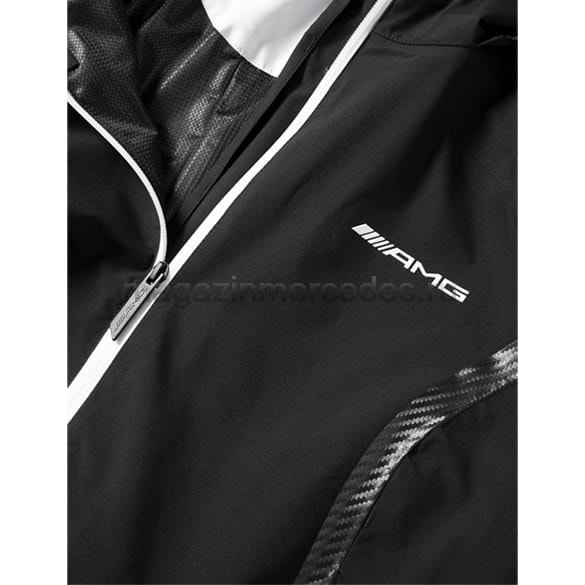 Модный предмет гардероба и практичный спутник в ненастную погоду: функциональная женская куртка AMG черно-белого цвета. Изготовленная из 100 % полиэстера, куртка является полностью водо- и ветронепроницаемой, и в то же время воздухопроницаемой. Благодаря эластичному материалу и формованным швам обеспечивается максимальная свобода движения. В двух накладных внутренних карманах на молнии можно хранить мелкие предметы, например смартфон или ключи, не нарушая при этом слегка приталенный покрой. Практичные отверстия впереди и сзади обеспечивают дополнительную вентиляцию и также способствуют высокому комфорту ношения. В ненастную погоду пропитка Purtex® и водо- и ветронепроницаемая молния белого глянцевого цвета защищают от влаги. Куртка впечатляет прочной подкладкой с эффектом карбона, а благодаря регулируемым по ширине манжетам рукавов на кнопке и кулиске с фиксаторами по нижнему краю ее можно оптимально подогнать под индивидуальную фигуру. Удлиненные эластичные манжеты с отверстием для большого пальца при необходимости можно вытянуть, чтобы согреть ладони. В передней части венские швы проклеены декоративной лентой с эффектом карбона, что в комбинации с белым объемным принтом логотипа AMG на груди и сумке создает модный, и в то же время функциональный дизайн. - Цвет: черный/белый - Материал: 100 % полиэстер - Размеры: XS–XL - Водо- и ветронепроницаемая - Воздухопроницаемый материал - Запатентованная обработка подкладки - Modern Fit