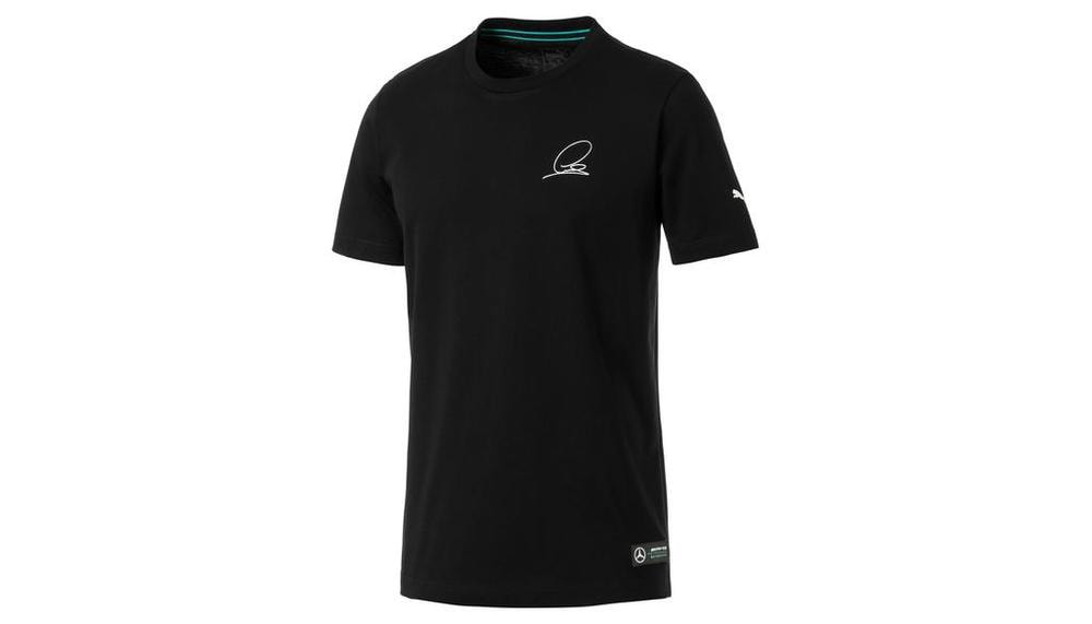 Идеальный выбор для настоящих фанатов: черная мужская футболка не только отличается высоким комфортом ношения, но и снабжена росписью Льюиса Хэмилтона впереди. Она изготовлена из 100 % хлопка и расставляет стильные акценты благодаря тесьме контрастного цвета сзади на вороте. На задней части футболки производства PUMA для «Мерседес-Бенц» имеется графический принт, а нашивка с логотипом «MERCEDES AMG PETRONAS MOTORSPORT» и логотип фирмы PUMA Cat на плече гармонично завершают дизайн.