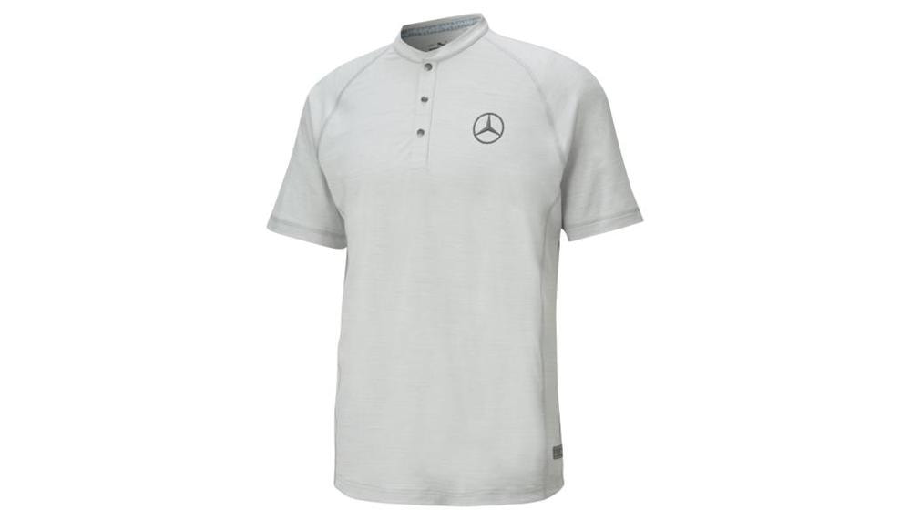 Повышенный уровень свободы движения и комфорта: футболка поло для игры в гольф для мужчин является идеальным предметом одежды для захватывающих партий на игровом поле. Ведь в футболке умело сочетаются высокая функциональность и стильный дизайн. Этот предмет одежды привлекательно выглядит не только за счет принта в виде звезды Mercedes-Benz в трехмерном дизайне на груди, но и за счет горловины хенли на 3 пуговицах, не стесняющей движения. Кроме того, мужская футболка CLOUDSPUN сшита из очень мягкого, функционального, эластичного материала, тянущегося в 4-х направлениях, хорошо отводящего влагу наружу и создающего приятное чувство сухости кожи во время всей игры. Высокий комфорт ношения, модные детали: с футболкой поло для игры в гольф победа обеспечена.