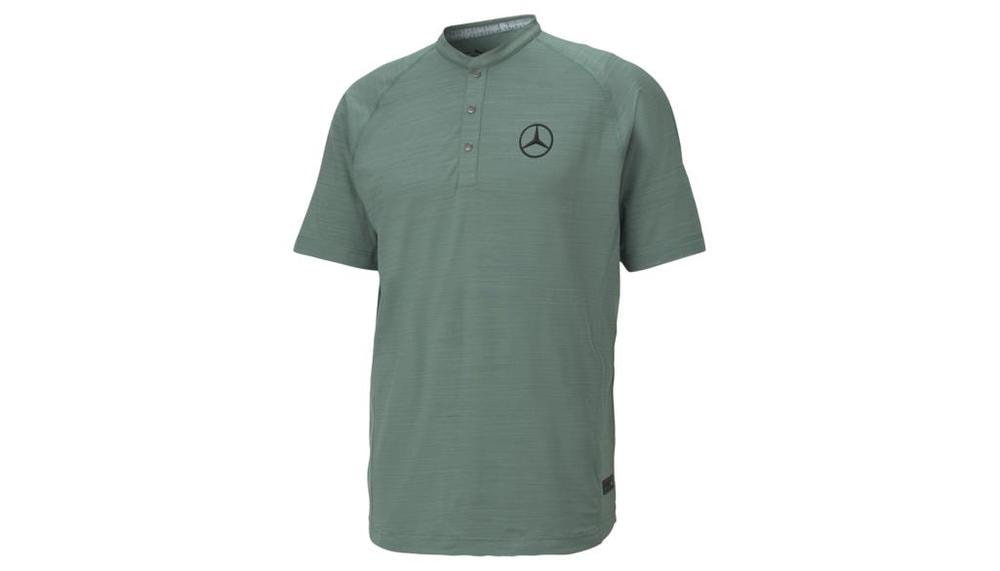 Повышенный уровень свободы движения и комфорта: футболка поло для игры в гольф для мужчин является идеальным предметом одежды для захватывающих партий на игровом поле. Ведь в футболке умело сочетаются высокая функциональность и стильный дизайн. Этот предмет одежды привлекательно выглядит не только за счет принта в виде звезды Mercedes-Benz в трехмерном дизайне на груди, но и за счет горловины хенли на 3 пуговицах, не стесняющей движения. Кроме того, мужская футболка CLOUDSPUN сшита из очень мягкого, функционального, эластичного материала, тянущегося в 4-х направлениях, хорошо отводящего влагу наружу и создающего приятное чувство сухости кожи во время всей игры. Высокий комфорт ношения, модные детали: с футболкой поло для игры в гольф победа обеспечена.