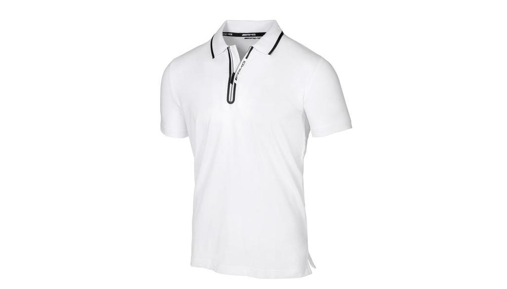 Черно-белая мужская футболка поло AMG подчеркивающего фигуру покроя Slim Fit отличается высоким комфортом ношения благодаря комбинации 95 % хлопка и 5 % эластана. Футболка поло с коротким рукавом имеет двухцветную молнию и боковые шлицы. Воротник в резинку 1х1 и планка молнии проклеены. Вытканный логотип AMG белого цвета на тесьме сзади на вороте и на боковых шлицах, черный принт логотипа AMG с указанием размера на внутренней стороне горловины, черный логотип AMG на планке молнии и логотип AMG на бегунке молнии с автоматическим фиксатором создают визуальные акценты. - Цвет: белый/черный - Материал: 95 % хлопок/5 % эластан - Размеры: S–XXL - С коротким рукавом - На молнии - Боковые шлицы - Slim Fit