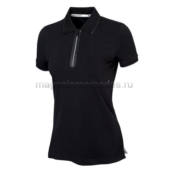 Черно-белая женская футболка поло подчеркивающего фигуру покроя Slim Fit отличается высоким комфортом ношения благодаря комбинации 95 % хлопка и 5 % эластана. Футболка поло с коротким рукавом имеет двухцветную молнию и боковые шлицы. Воротник в резинку 1х1 и планка молнии проклеены. Вытканная белая полоса на манжетах рукавов, черный вытканный логотип AMG на тесьме сзади на вороте и на боковых шлицах, белый принт логотипа AMG с указанием размера на внутренней стороне горловины, белый принт логотипа AMG на планке молнии и логотип AMG на бегунке молнии с автоматическим фиксатором создают визуальные акценты. - Цвет: черный/белый - Материал: 95 % хлопок/5 % эластан - Размеры: XS–XL - С коротким рукавом - На молнии - Боковые шлицы - Slim Fit