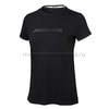 Удобная и модная: черная женская футболка AMG из 95 % хлопка и 5 % эластана отличается высоким комфортом ношения и является идеальной одеждой для досуга. Футболка с коротким рукавом имеет круглый вырез горловины и подчеркивающий фигуру покрой Slim Fit. Белая тесьма с черным вытканным логотипом AMG сзади на вороте, белый принт логотипа AMG с указанием размера на внутренней стороне горловины и двухцветный объемный принт логотипа на груди придают футболке особый шарм. - Цвет: черный - Материал: 95 % хлопок/5 % эластан - Размеры: XS–XL - С коротким рукавом - Круглый вырез горловины - Зауженный крой