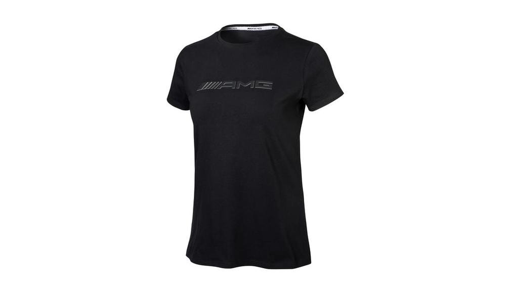 Удобная и модная: черная женская футболка AMG из 95 % хлопка и 5 % эластана отличается высоким комфортом ношения и является идеальной одеждой для досуга. Футболка с коротким рукавом имеет круглый вырез горловины и подчеркивающий фигуру покрой Slim Fit. Белая тесьма с черным вытканным логотипом AMG сзади на вороте, белый принт логотипа AMG с указанием размера на внутренней стороне горловины и двухцветный объемный принт логотипа на груди придают футболке особый шарм. - Цвет: черный - Материал: 95 % хлопок/5 % эластан - Размеры: XS–XL - С коротким рукавом - Круглый вырез горловины - Зауженный крой