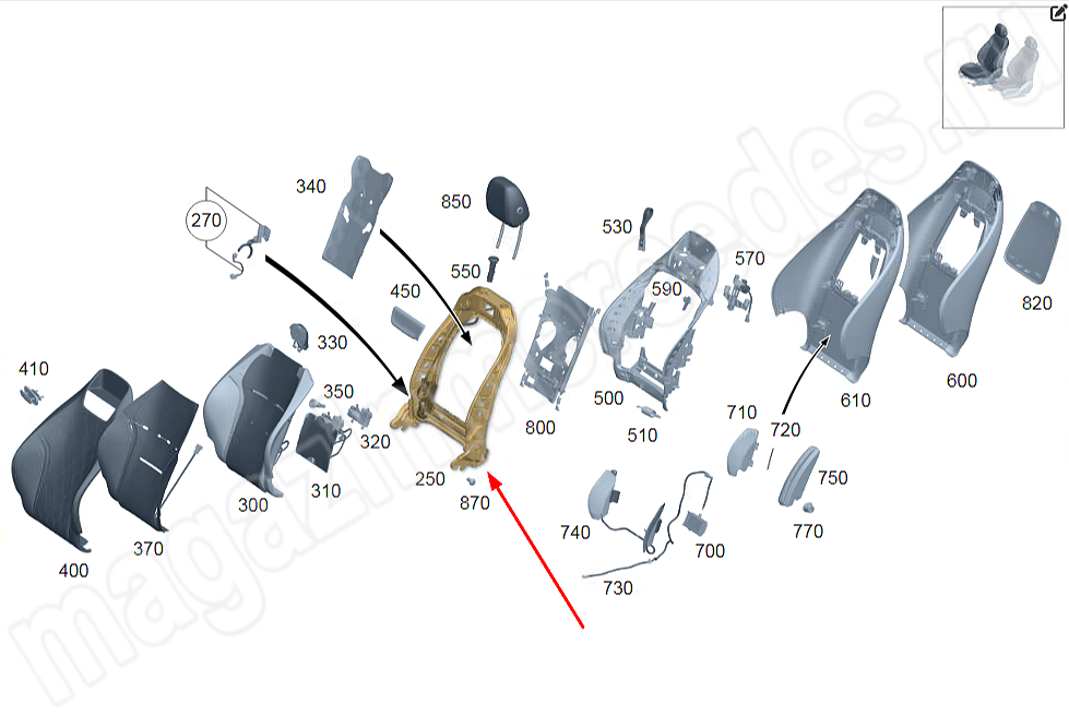 Каркас спинки переднего сиденья Mercedes