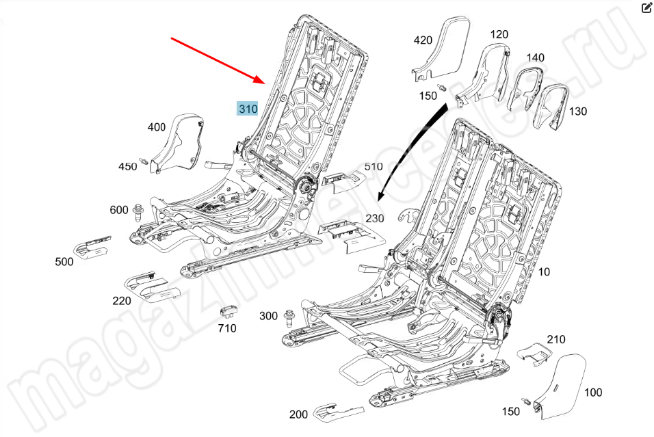 Каркас заднего сиденья справа Mercedes