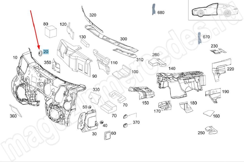 Кнопка застёжка кожуха на перегородке Mercedes AMG GT X290