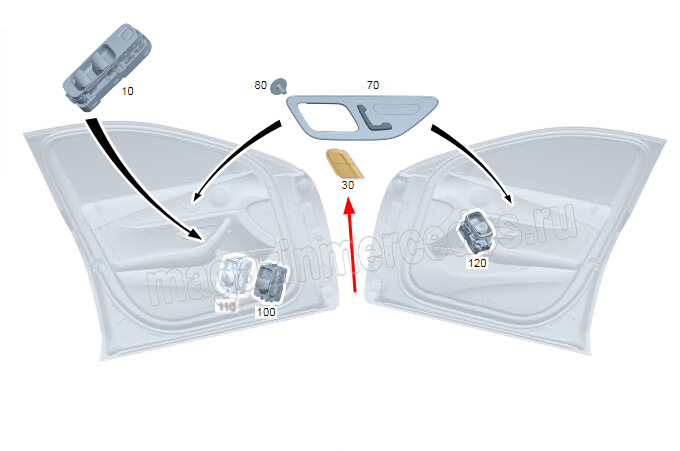 Кнопки выключателя центрального замка передней левой двери Mercedes C Class W206