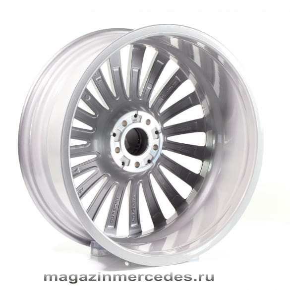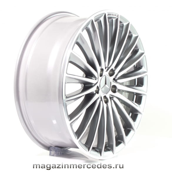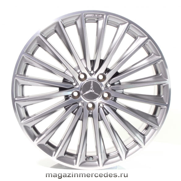 Колесный диск AMG многоспицевый. Параметры диска: 8 J x 20 ET 33 (20 дюймов). Цвет: Серый титан. Материал: Алюминий. Рекомендуемая резина: 245/35 R20. Мост: Передний мост.