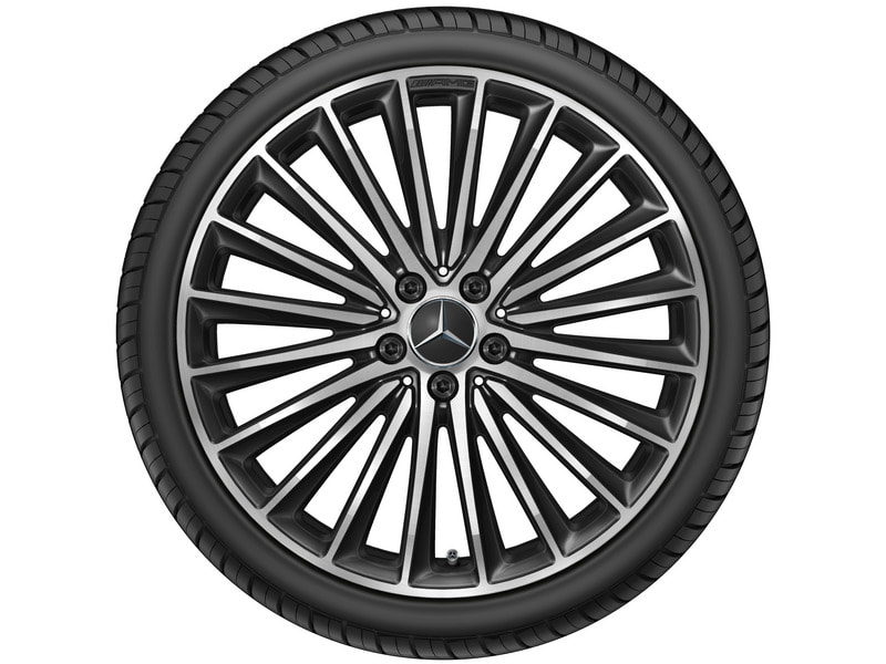 Колесный диск AMG многоспицевый. Параметры диска: 8 J x 20 ET 33 (20 дюймов). Цвет: Черный. Материал: Алюминий. Рекомендуемая резина: 245/35 R20. Мост: Передний мост.