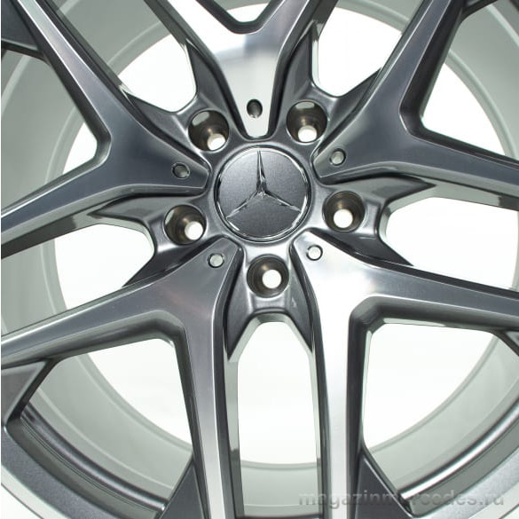 Колесный диск AMG с 5 двойными спицами. Параметры диска: 10J x 21 ET 33 (21 дюймов). Цвет: Серый Титан. Рекомендуемая резина: 285/45 R21. Мост: Передний-Задний мост.