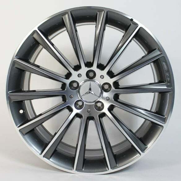 Колесный диск AMG многоспицевый. Параметры диска: 8,5 J x 19 ET 34,5 (19 дюймов). Цвет: Серый титан. Материал: Алюминий. Рекомендуемая резина: 255/35 R19. Мост: Передний мост.