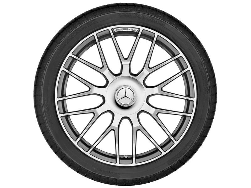 Колесный диск AMG. Параметры диска: 10 J x 19 ET 47 (19 дюймов). Цвет: Серый титан. Материал: Алюминий. Рекомендуемая резина: 285/30 R19. Мост: задний мост.