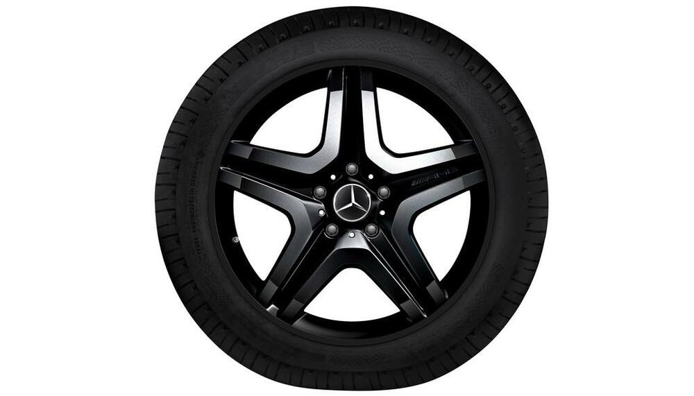 Колесный диск AMG с 5 спицами. Параметры диска: 9,5 J x 20 ET 50 (20 дюймов). Цвет: Черный. Рекомендуемая резина: 275/50 R20. Мост: Передний-Задний мост.