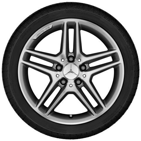 Колесный диск AMG с 5 двойными спицами. Параметры диска: 7,5 J x 17 ET 47 (17 дюймов). Цвет: Серебристый. Материал: Алюминий. Рекомендуемая резина: 225/45 R17. Мост: Передний-Задний мост.