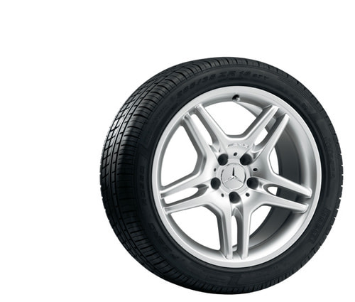 Колесный диск AMG с 5 двойными спицами. Параметры диска: 8,5 J x 18 ET 25 (18 дюймов). Цвет: Стерлинговое серебро. Материал: Алюминий. Рекомендуемая резина: 245/40 R18. Мост: Передний мост.