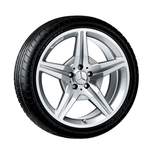 Колесный диск AMG с 5 спицами. Параметры диска: 9,5 J x 19 ET 28 (19 дюймов). Цвет: Серебристый. Материал: Алюминий. Рекомендуемая резина: 285/30 R19. Мост: Задний мост.