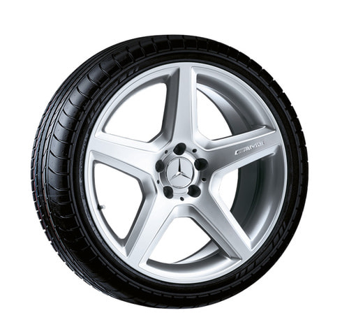Колесный диск AMG с 5 спицами. Параметры диска: 8,5 J x 19 ET 25 (19 дюймов). Цвет: Серебристый титан. Материал: Алюминий. Рекомендуемая резина: 255/35 R19. Мост: Передний мост.