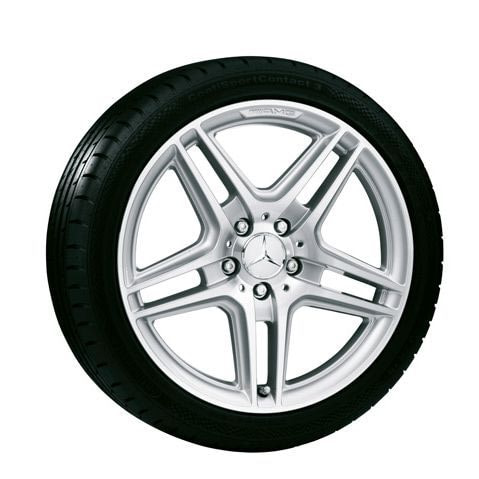 Колесный диск AMG с 5 двойными спицами. Параметры диска: 8 J x 18 ET 45 (18 дюймов). Цвет: Серебристый. Материал: Алюминий. Рекомендуемая резина: 235/40 R18.
