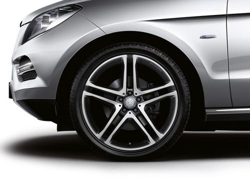 Колесный диск AMG с 5 двойными спицами. Параметры диска: 9 J x 21 ET 53 (21 дюймов). Цвет: Черный. Рекомендуемая резина: 265/40 R21. Мост: Передний-Задний мост.