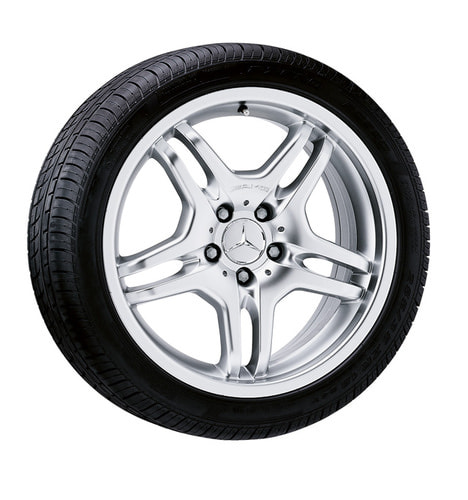Колесный диск AMG с 5 двойными спицами. Параметры диска: 8,5 J x 17 ET 30 (17 дюймов). Цвет: Стерлинговое серебро. Рекомендуемая резина: 245/40 R17. Мост: Задний мост.