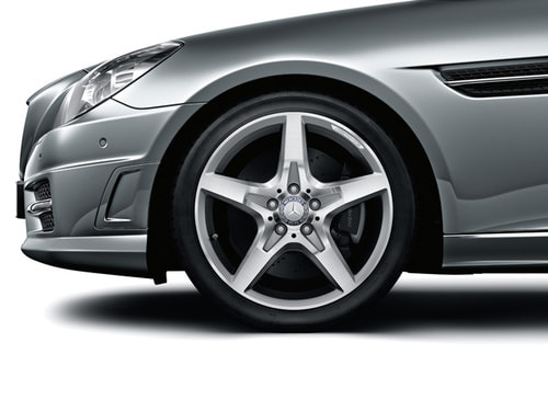 Колесный диск AMG с 5 спицами. Параметры диска: 7,5 J x 18 ET 42 (18 дюймов). Цвет: Серебристый. Рекомендуемая резина: 225/40 R18. Мост: Передний-Задний мост.