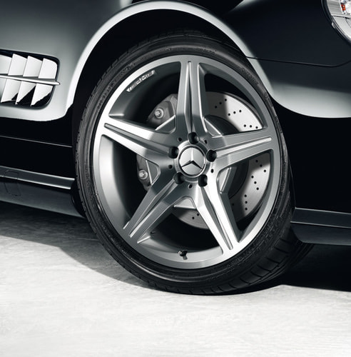 Колесный диск AMG с 5 спицами. Параметры диска: 8,5 J x 19 ET 30 (19 дюймов). Цвет: Серебристый. Рекомендуемая резина: 255/35 R19. Мост: Передний мост.