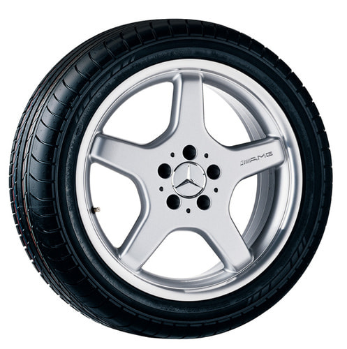 Колесный диск AMG с 5 спицами. Параметры диска: 9,5 J x 19 ET 31 (19 дюймов). Цвет: Стерлинговое серебро. Рекомендуемая резина: 275/30 R19. Мост: Задний мост.