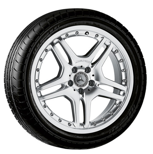 Колесный диск AMG с 5 двойными спицами, несколько частей. Параметры диска: 8,5 J x 19 ET 30 (19 дюймов). Цвет: Серый титан. Рекомендуемая резина: 245/35 R19. Мост: Передний мост.