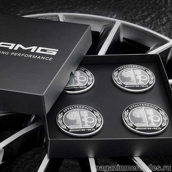 Колпачки на ступицы колес AMG, с гербом AMG, комплект из 4-х частей