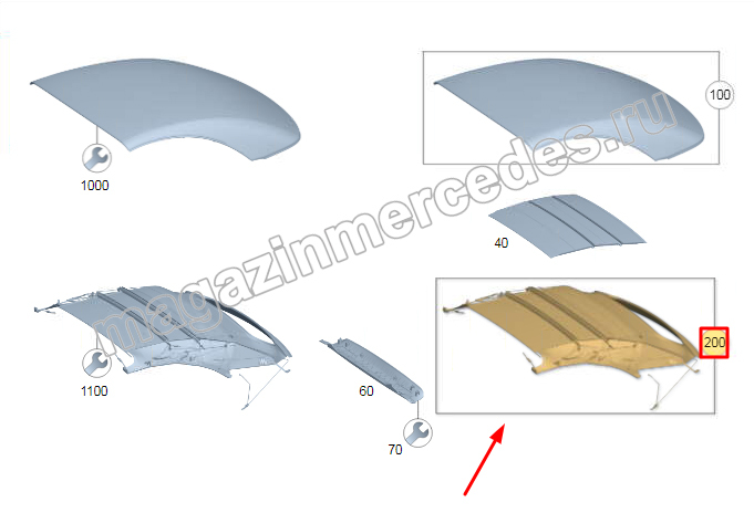 Комплект обшивки складного верха Mercedes SL Class R232