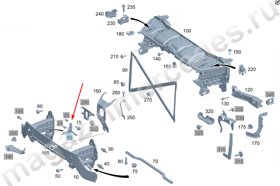 Консоль крепления передней панели снизу справа Mercedes GLE Class V167
