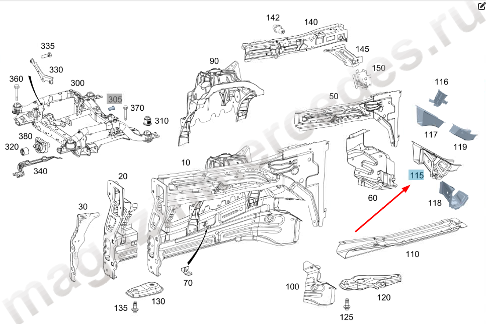 Консоль переднего лонжерона сзади справа Mercedes GLE Class V167