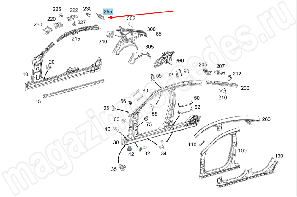 Консоль рамы крыши сзади слева Mercedes AMG GT X290