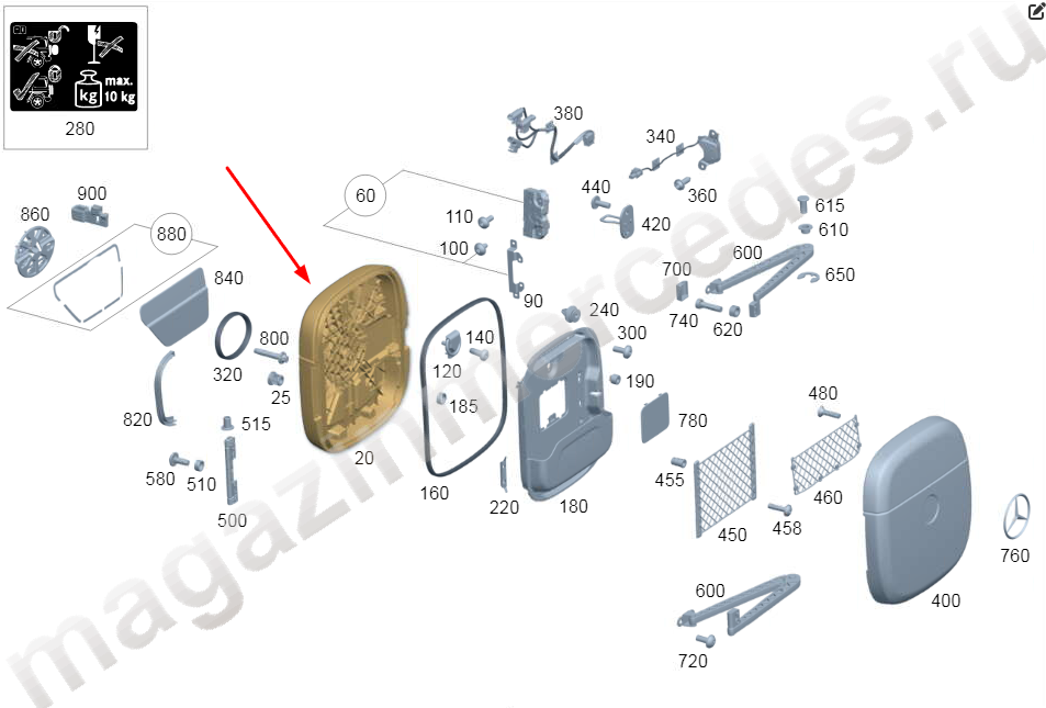Отзывы - Контейнер вещевого ящика на двери багажника передняя часть MercedesОставить отзыв