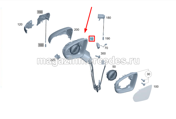 Корпус правого зеркала заднего вида Mercedes SL Class R232