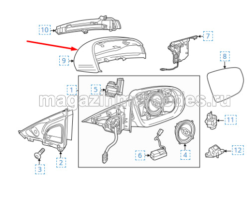 Корпус зеркала правый цвет черный Mercedes CLS Class C257
