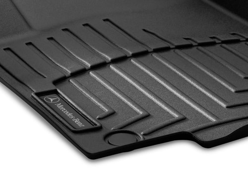 Сделаны из прочного, легко моющегося материала. Полностью покрывают пол в пространстве для ног. Высокая кромка и углубления удерживают грязь и воду. С выразительной надписью "Mercedes-Benz"
