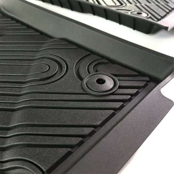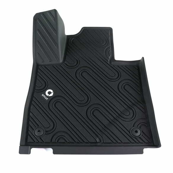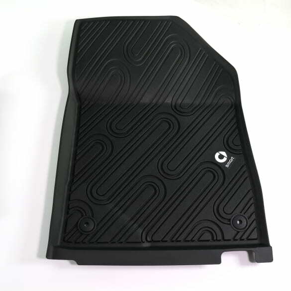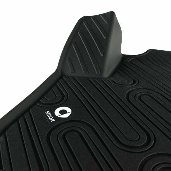 Черные резиновые коврики Genuine smart в наборе из трех предметов для вашего smart #3 THREE оснащены застежкой-кнопкой и, следовательно, обеспечивают надежное сцепление. Они защищают пол от грязи и впечатляют своей экологичностью.
