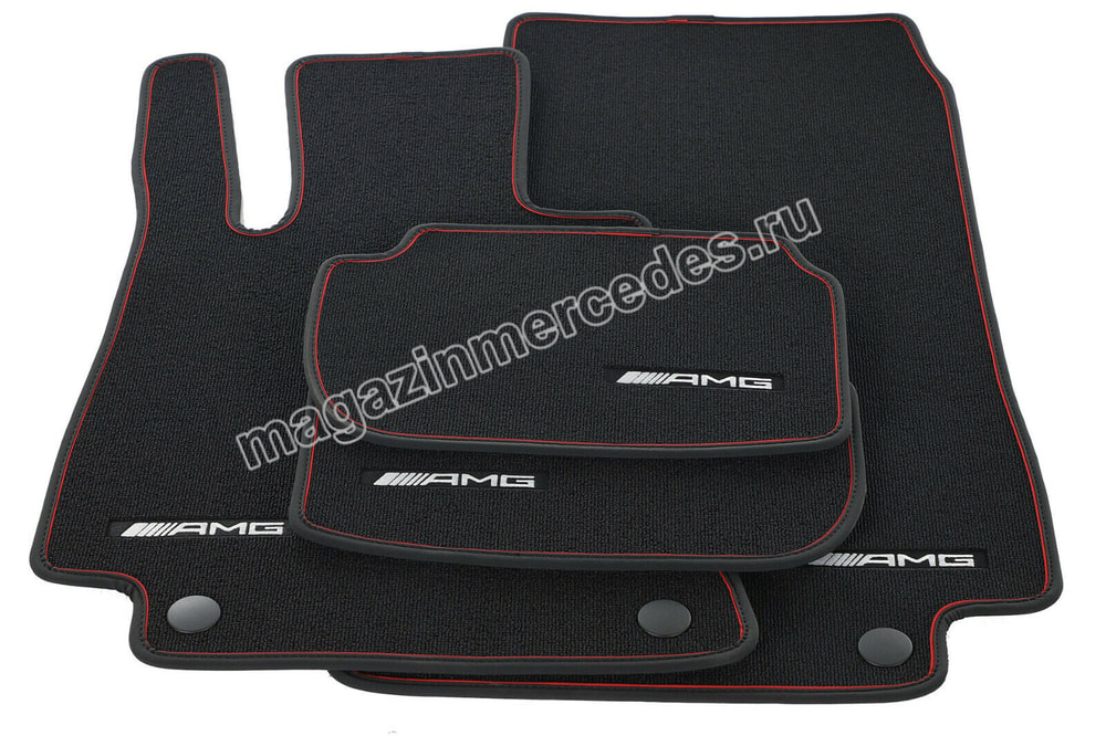 Детали продукта: Подлинный Mercedes-Benz Велюровые коврики для пола Строчка красного цвета Набор из 4 штук Вышитый логотип AMG на передних ковриках