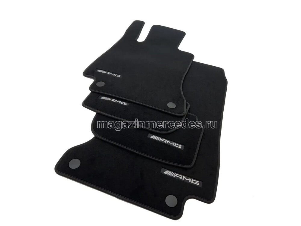 Детали продукта: Подлинный Mercedes-Benz Велюровые коврики для пола Строчка черного цвета Набор из 4 штук Вышитый логотип AMG на передних ковриках