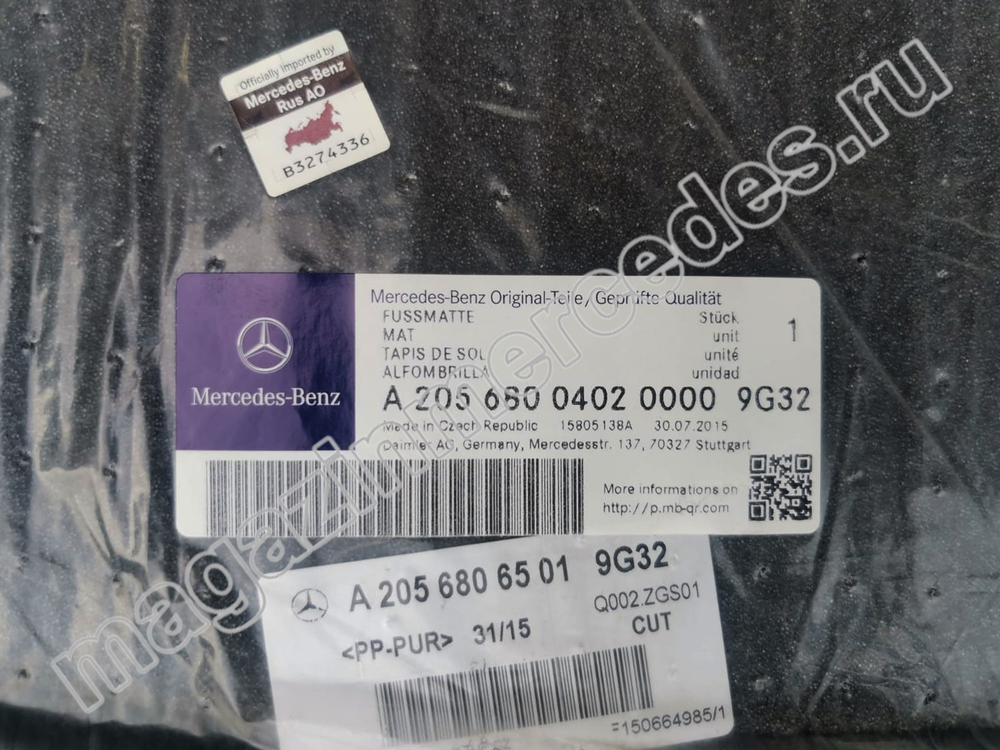 Коврики салона C class C205 репсовые черные задние