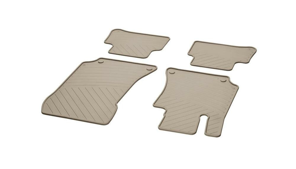 Резиновые коврики, 4 шт. Рисунок в виде дуг и полос, выразительная звезда "Мерседес-Бенц", оригинальная система крепления на стороне водителя. Подходят также и для моделей 4MATIC.