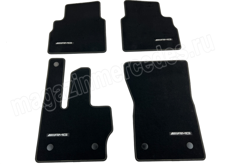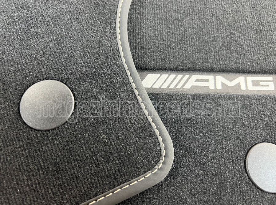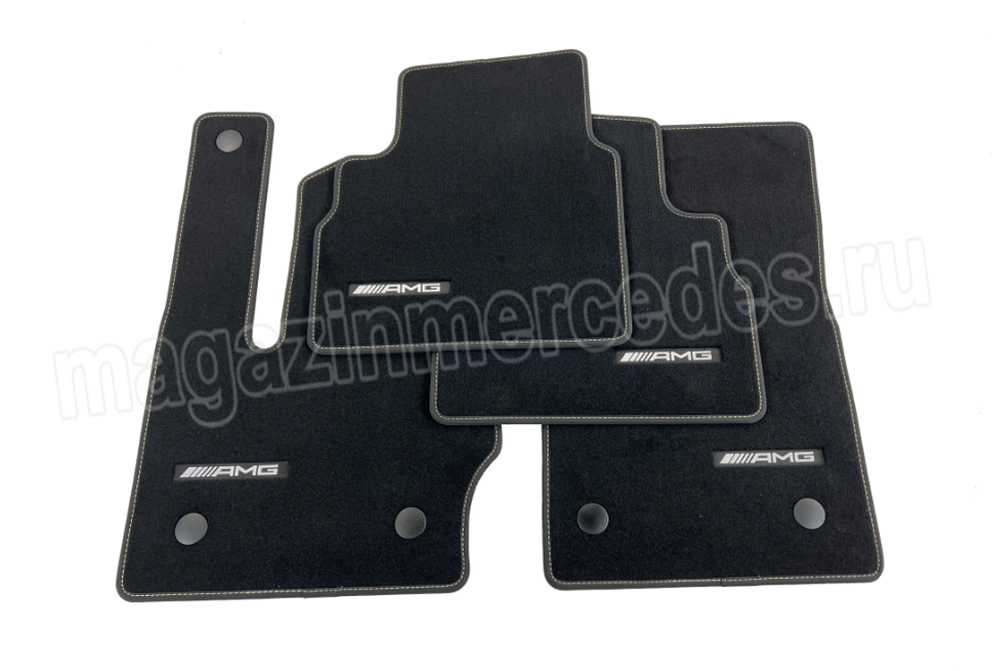 4 оригинальных коврика Mercedes-Benz AMG премиум-класса черного цвета с золотой прострочкой Вы покупаете комплект велюровых ковриков для G-Class AMG с крепежным материалом без дополнительных аксессуаров Подходит для всех моделей G-Class Год выпуска: с 2018 года Модельный ряд: W463 Цвет: черный Цвет шва: золотой Состояние: Оригинальное качество Mercedes-Benz, очень прочное и вряд ли сравнимое с копиями Проверенная система крепления ковриков водителя и переднего пассажира в виде "грибовидной головки". Большая эмблема AMG на всех 4 ковриках Артикул: A4636802911 1D27