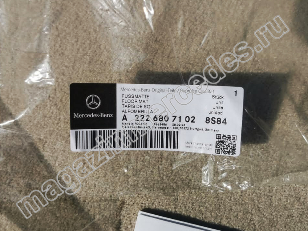 Велюровые коврики, 4 шт., классический ворс, полированная металлическая табличка с надписью «Mercedes-Benz» и оригинальная система крепления на стороне водителя, переднего пассажира и ковриках для задней части салона. Подходят также для моделей 4MATIC.