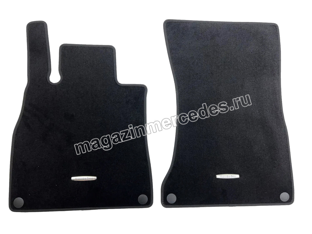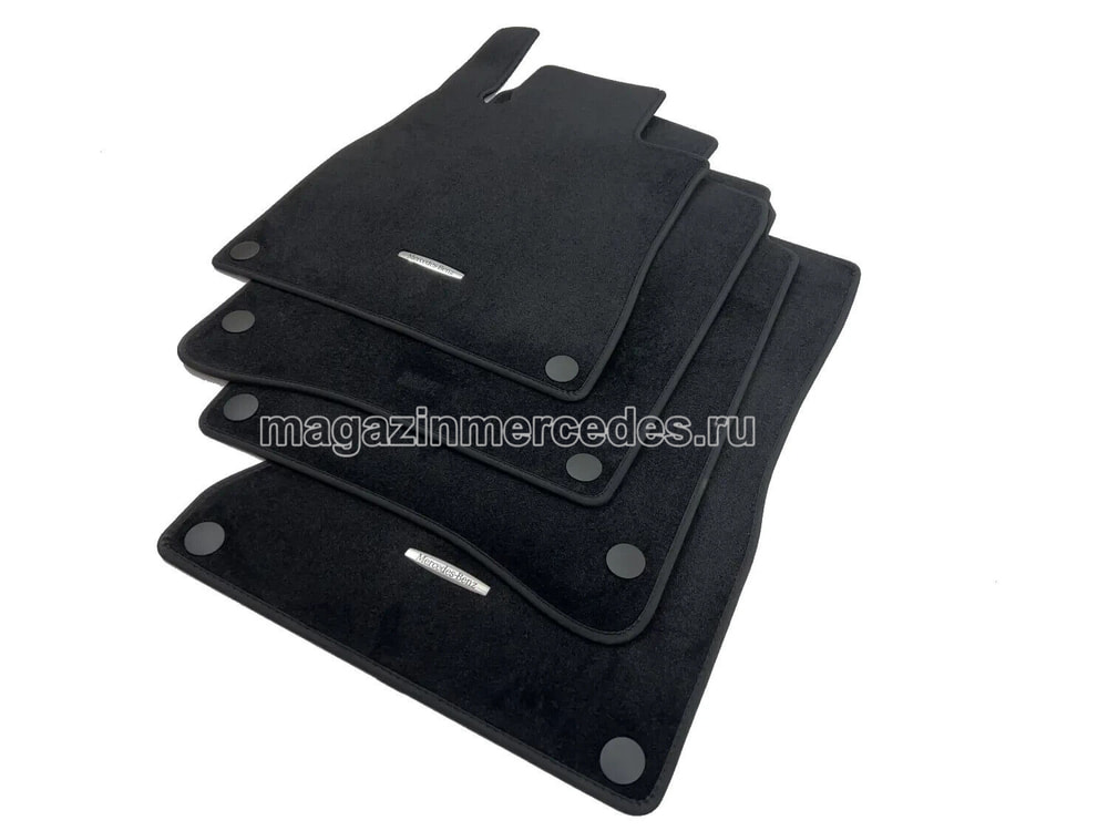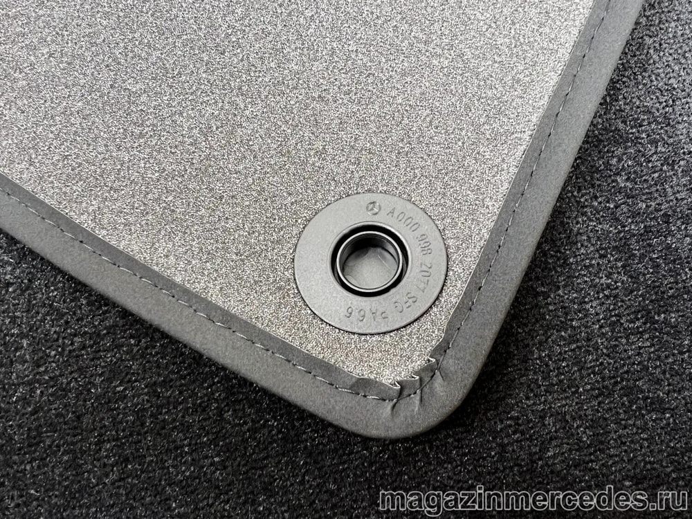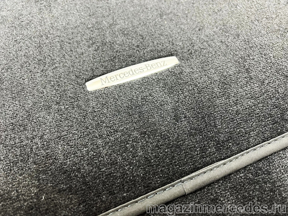 Велюровые коврики, 4 шт., классический ворс, полированная металлическая табличка с надписью «Mercedes-Benz» и оригинальная система крепления на стороне водителя, переднего пассажира и ковриках для задней части салона. Подходят также для моделей 4MATIC.
