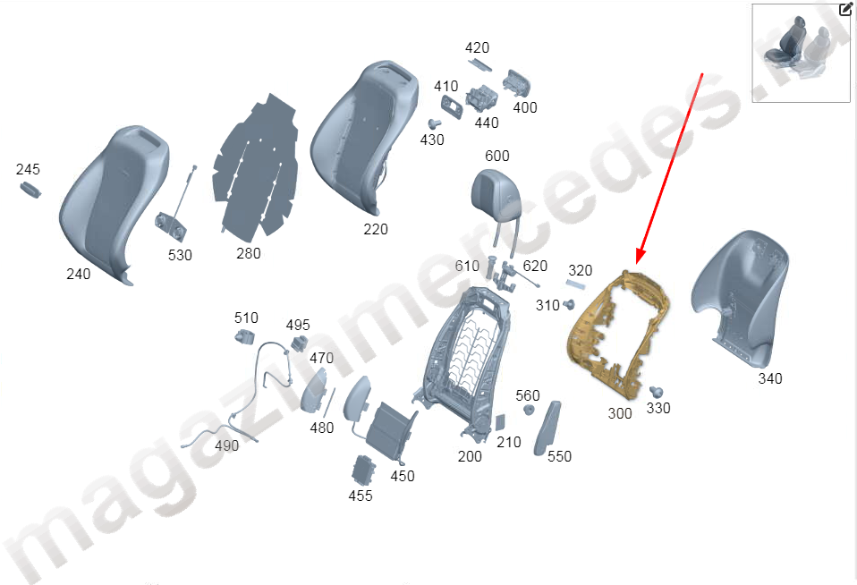 Кожух спинки переднего сиденья Mercedes